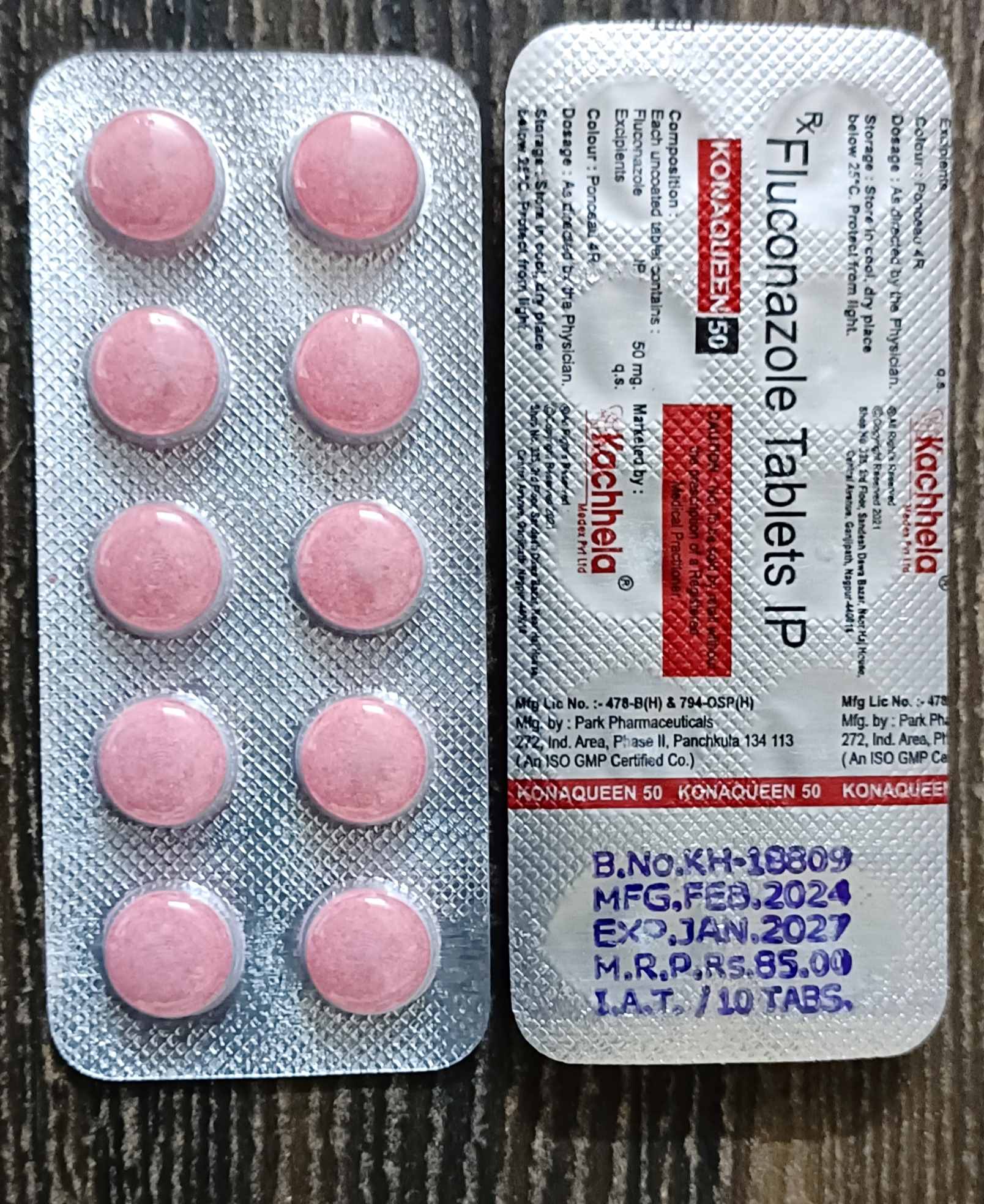 Konaqueen 50 mg Fluconazole Tablet is used to treat fungal infections of the mouth, throat, vagina, and other parts of the body including fingernails and toenails. It kills fungi by destroying the fungal cell membrane thereby stopping the growth of fungi.